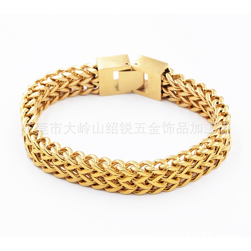品名:金色不銹鋼雙排正反手鏈12mm